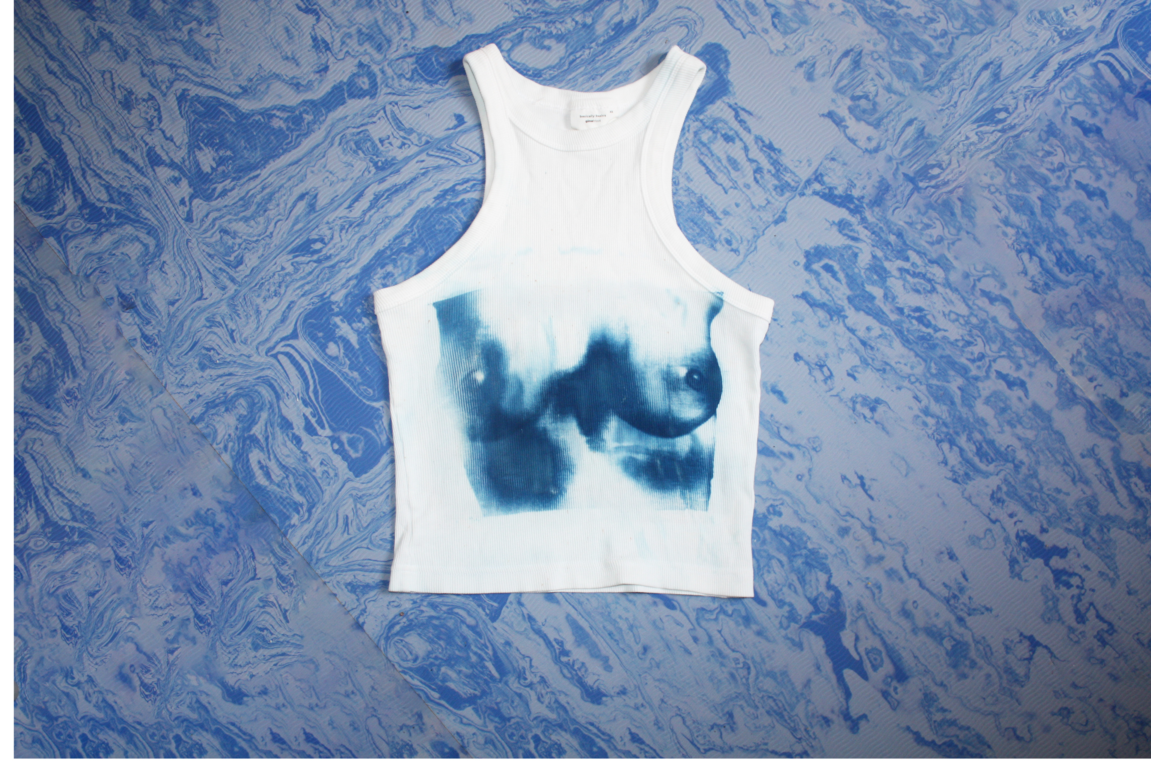 Basert på det ikoniske bildet av Marilyn Monroe, først brukt for et kalenderfirma og senere publisert i de tidlige utgavene av Playboy. motivet er fotografisk overført i blåtoner på ulike singlets som en utforskning av teknikkens muligheter på tekstil.